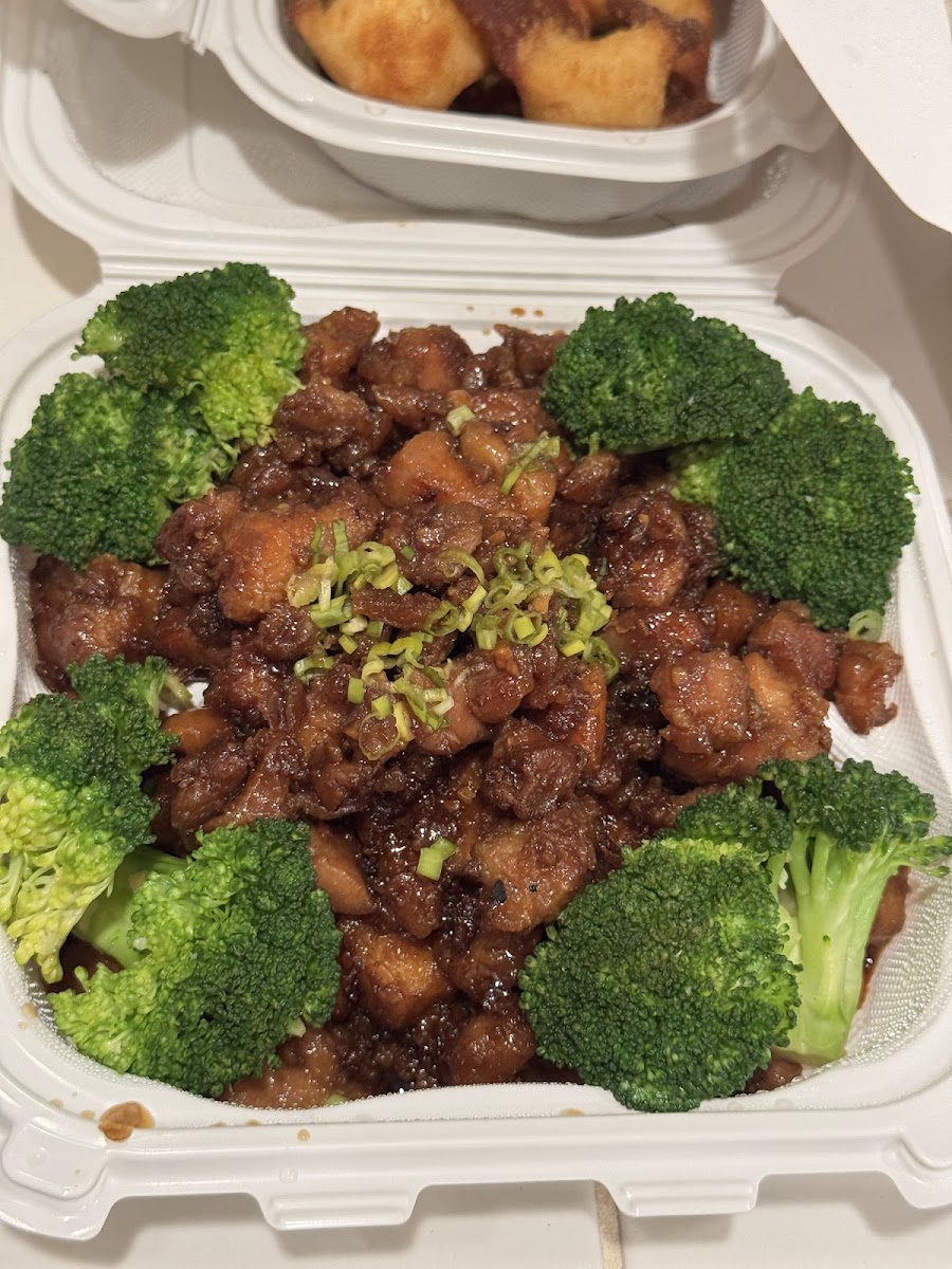 Sweet and Sour Chicken Beef Chow Mein and Jasmine Tea
